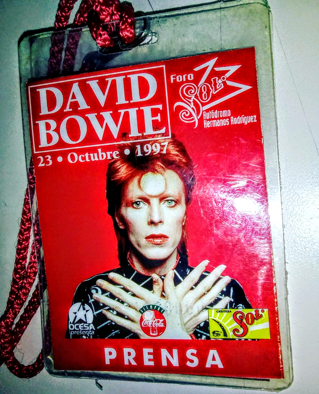 Acreditación de Félix Morriña, de hace 22 años, para cubrir el concierto de David Bowie en México.