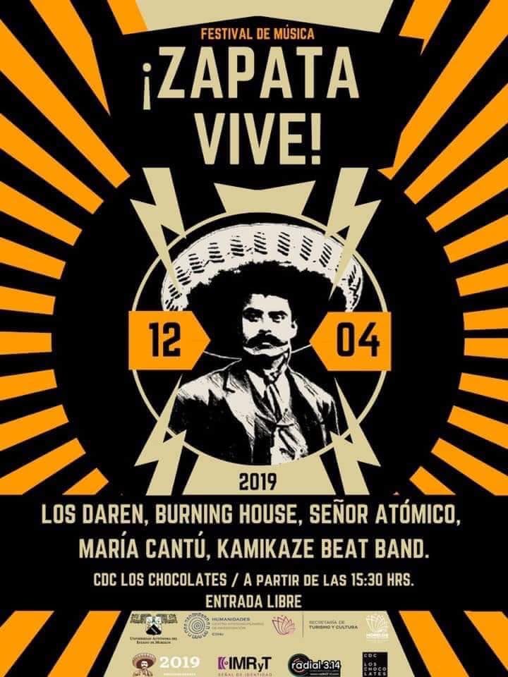 Dos días después de la conmemoración del Centenario Luctuoso de Emiliano Zapata, se realizó un concierto con las bandas de Morelos: Los Daren, Burning House, Señor Atómico, La María Cantú y Kamikaze Beat Band. El viernes, 12 de abril, al rededor de las tres de la tarde comenzó el festival musical Zapata Vive, en el Centro de Desarrollo Comunitario Los Chocolates, ubicado en la colonia La Carolina, muy cerca del centro de Cuernavaca.