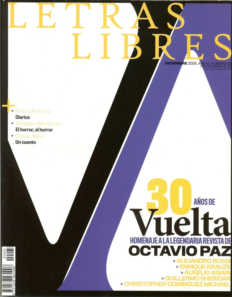 Una de las revistas más famosas -a la cual siempre nos remitimos con cierta nostalgia-, fue Vuelta (1976-1998), una publicación emblemática, no sólo por la calidad de los escritores que transitaban por sus páginas, sino también por ser fundada y movida por el único nobel de la literatura que tenemos en el país, Octavio Paz. Figura emblemática que sin duda tenía la inteligencia y la habilidad de las relaciones públicas, lo cual ayudaría a Vuelta a ver desfilar entre sus números, a plumas no sólo mexicanas, sino también latinoamericanas y de código postal internacional.