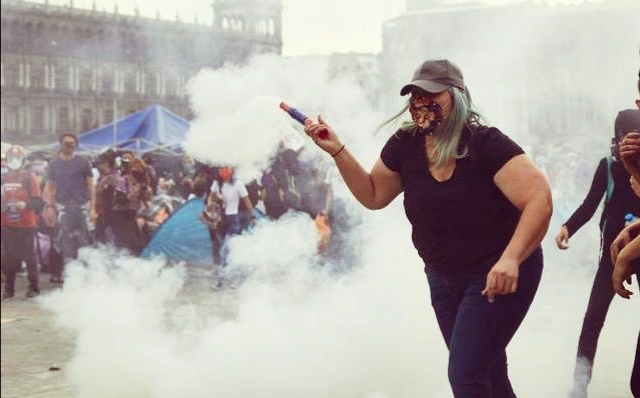 No nos fuimos sin ver de nuevo a «La Reinota», la mujer que regresó una bomba de humo a policías en el Zócalo de la Ciudad de México.