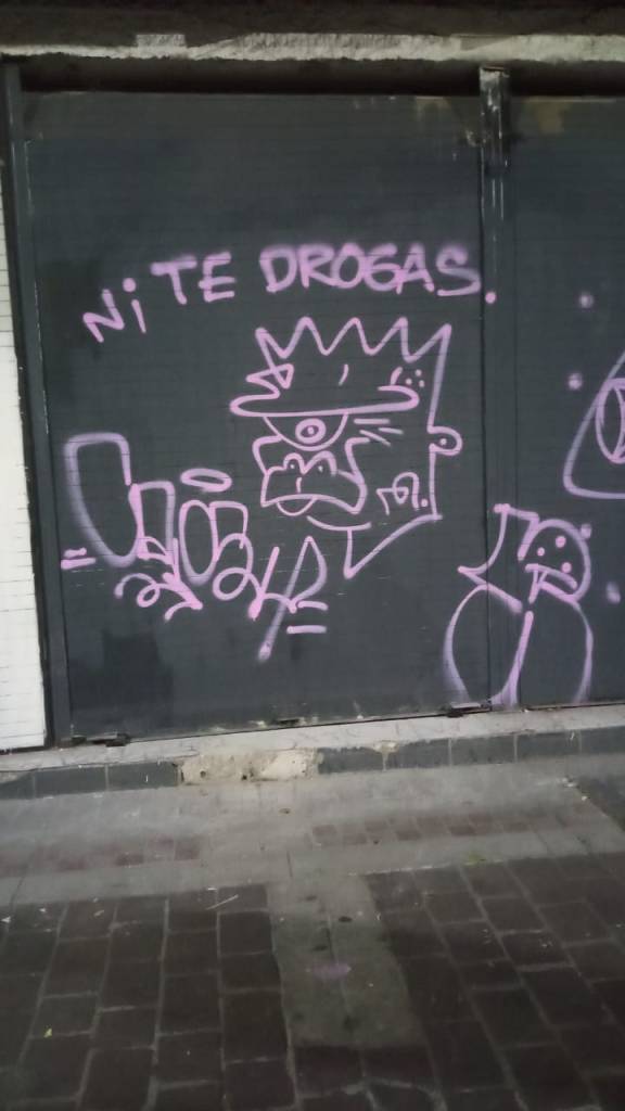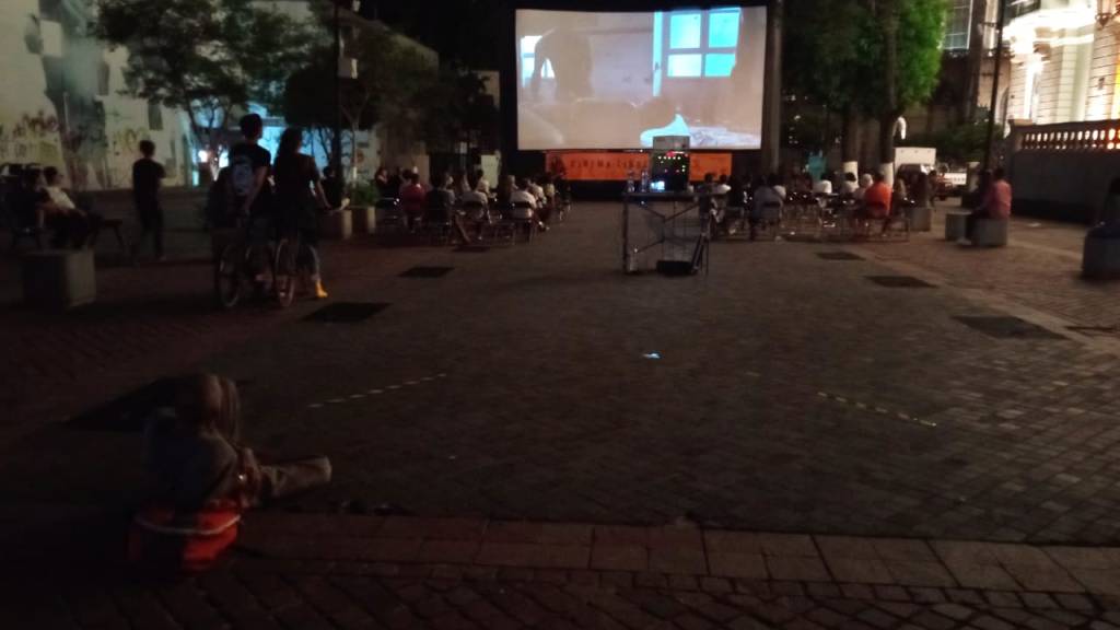 Me parece que el lugar donde se proyectó no es el mejor espacio para las proyecciones, pues con la iluminación del Paraninfo, que se encuentra al lado, no se distingue la imagen, el sonido está en constante lucha con el bullicio de los negocios que le rodean». Todo mal.