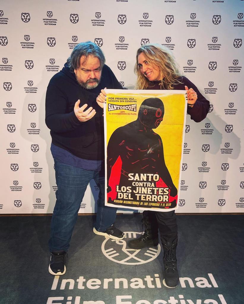 “No puedo describir lo que sentí cuando desenrollé uno de los fragmentos que había dentro y reconocí una escena de Santo vs los Jinetes del Terror”, así se lee en esa plataforma global de micromecenazgo para proyectos creativos, donde la película recaudó 155 mil 518 pesos para su reconstrucción, en el que contribuyeron 40 patrocinadores, al menos lo registrado hasta el 2 de febrero, que fue el mismo día en que se proyectó por vez primera en Róterdam. “Inmediatamente corrí a montarlos en la mesa de revisión y me quedé muda de ver que efectivamente eran escenas que debían corresponder a Los leprosos y el sexo. Tardamos más de dos años en poder escanear esas escenas en 4k del negativo de Santo vs los jinetes del terror, ya lo tenemos, y ahora comienza la aventura de armar la doble versión de la que será una de las películas más controvertidas de El Enmascarado de Plata”.