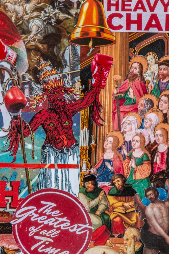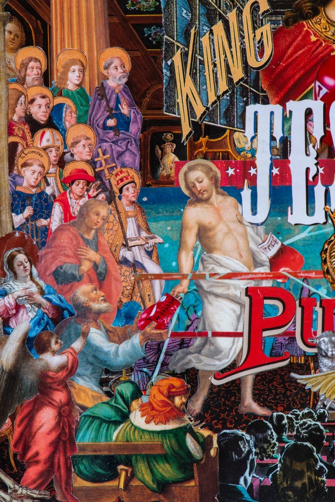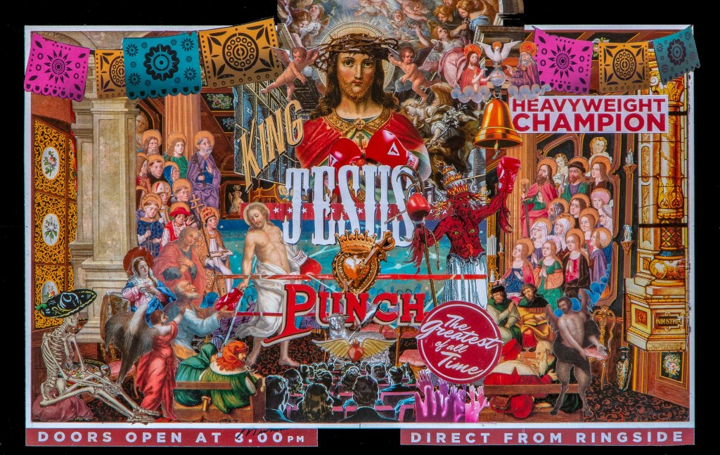 «Despues de un tiempo de no subir nada a redes sociales», advirtió el artista nacido en la Ciudad de México, en 1974, Ernesto Muñiz, compartió a inicios de esta Semana Santa su trabajo en collage sobre Cristo, un Cristo con guantes de boxeador, ¿contra quién pelea?
