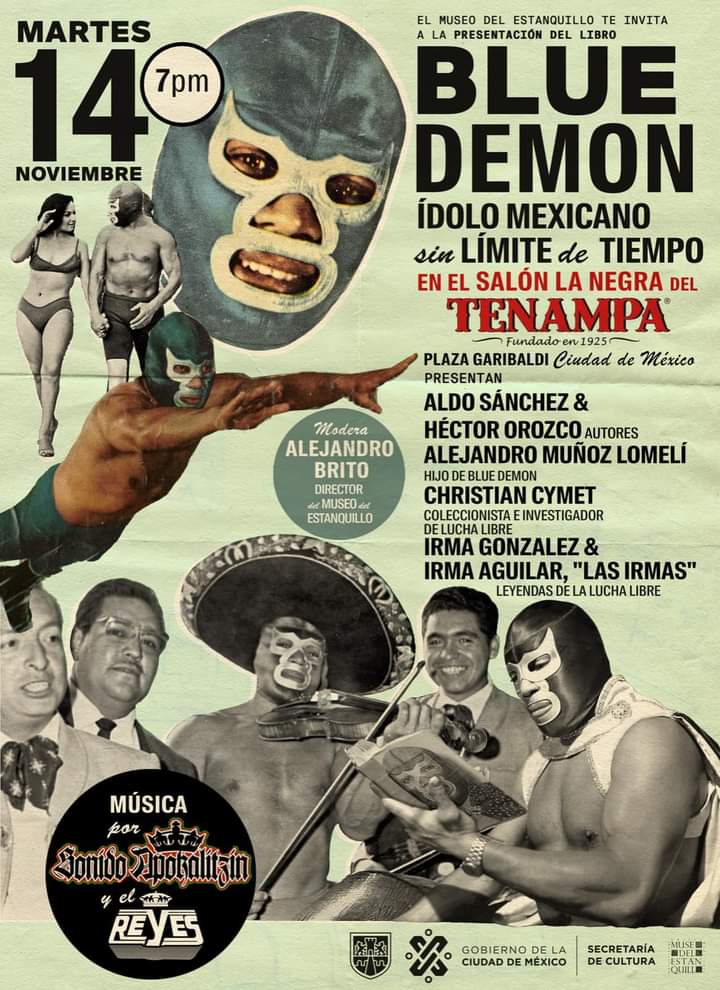 Según la información oficial, para la presentación del libro en el Tenampa, se convocó a Alejandro Muñoz Lomelí -uno de los hijos de Blue Demon-, así como las gladiadoras Irma González e Irma Aguilar, también al coleccionista e investigador de la Lucha Libre, Christian Cymet, y como moderador al director Museo del Estanquillo, Alejandro Brito. Todo esto con la música del Sonido Apokalitzin y El DJ Rey de Reyes. En breve sabremos cómo les fue y si cayeron derrotados por los tequilas.