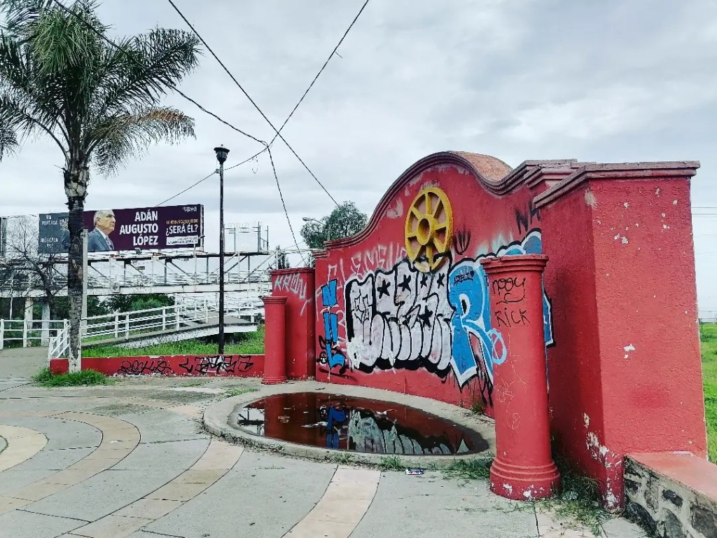 Efectivamente, fueron 40 minutos de viaje para llegar a la parada donde hay que caminar por la orilla de la carretera, para así arribar al rancho. Casi frente a éste se encuentra el Fraccionamiento Rancho Alegre, que no tiene nada de alegre, porque está descuidado, los grafitis de la entrada le dan un toque de tristeza y abandono.