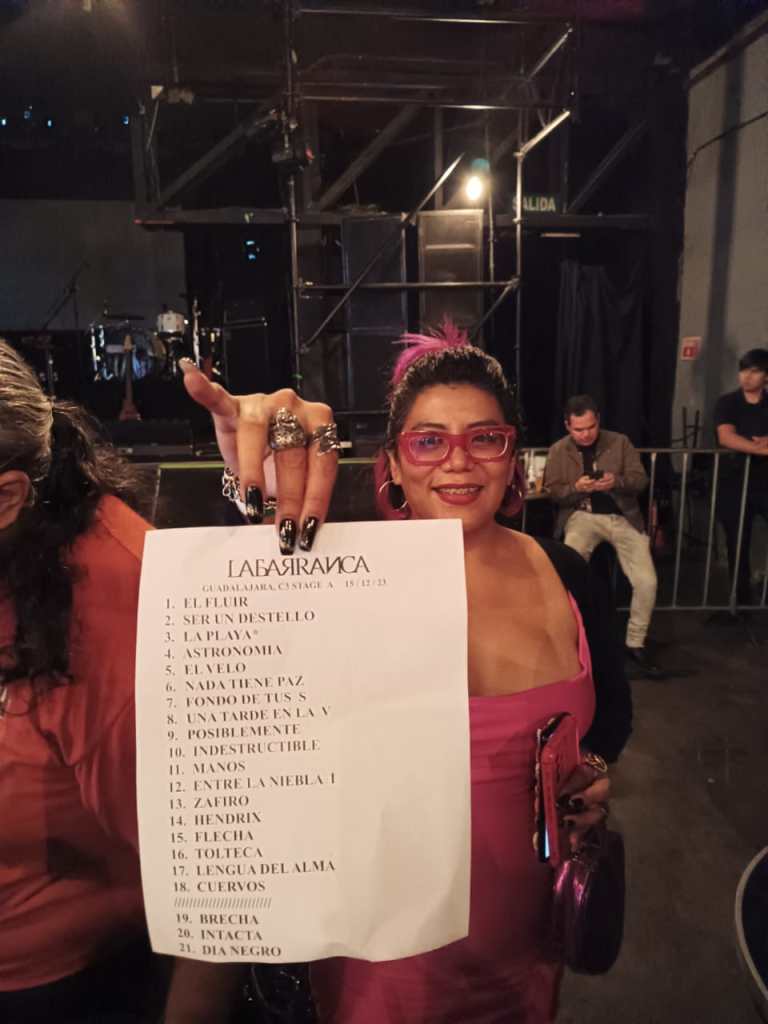 El primer concierto de La Barranca en Guadalajara fue un fluir, por ahí hasta salió a cantar el legendario Gerardo Enciso, Sara Valenzuela le hizo segunda con unos coros en «Día Negro». Si éste fue bueno, no quiero imaginar cómo será el de esta noche de sábado tocando sus primeros discos, porque en éste se concentraron fundamentalmente en lo más nuevo. La pregunta es ¿Lograremos estar ahí? ¿Reptaremos este sábado escuchando más anti villancicos? No lo sé. Lo único que sé es que está pendiente una entrevista con José Manuel Aguilera que sino es hoy sábado ya no fue y recoger unos libros viajeros que me entregará la manager de la banda Samantha Patiño, que ya lo contaré luego, pues fueron estos libros que salieron al final de la FIL de Guadalajara por una confusión de bolsas a la Ciudad de México y luego llegaron a Cuernavaca, para luego volver a la Ciudad de México y finalmente estar de vuelta a Guadalajara con apoyo de Samantha y la fotógrafa Berenice Fregoso.