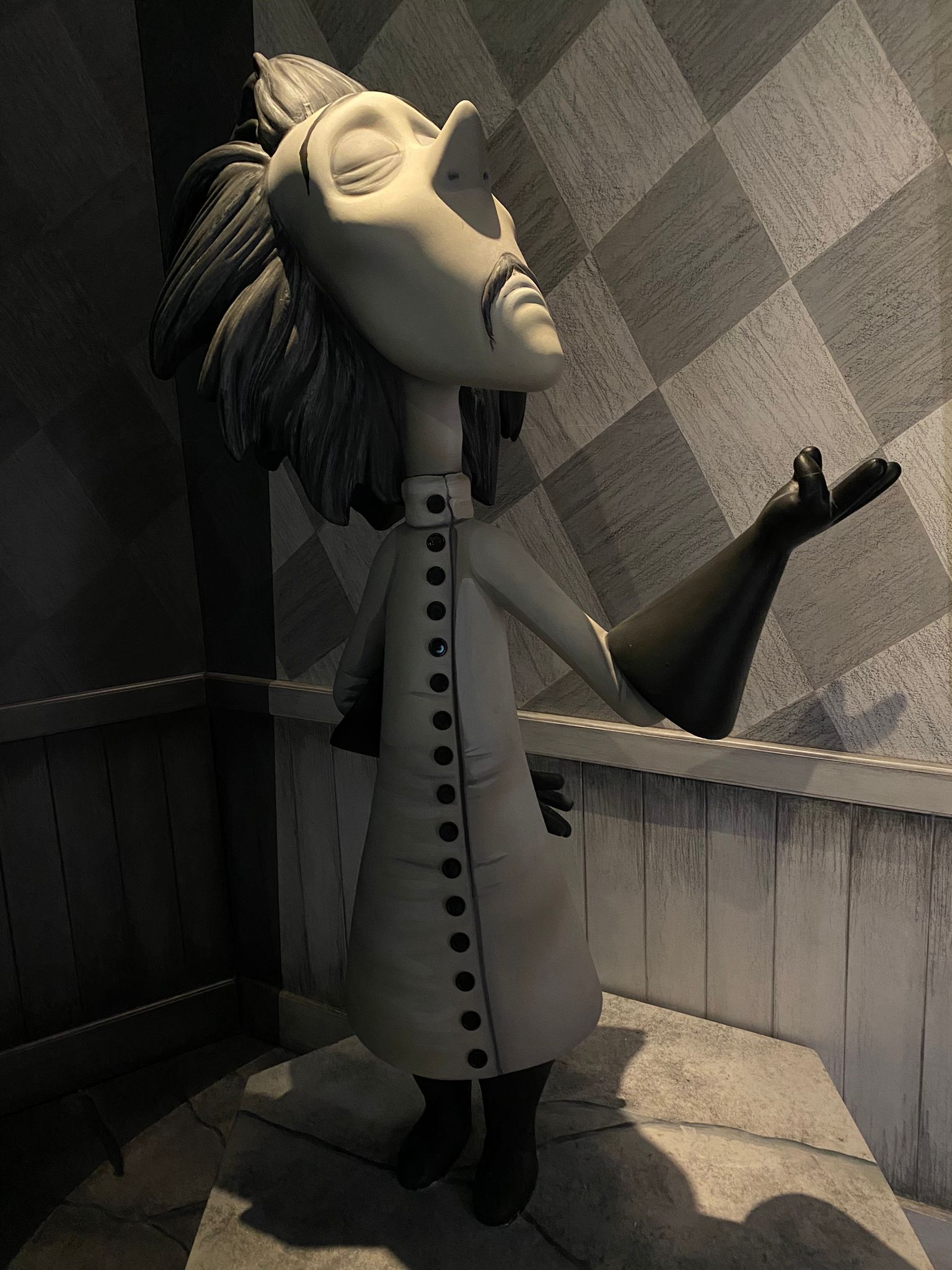 De la mano de la compañía española Letsgo, la exposición propone un recorrido inmersivo, apto para toda la familia, en un espacio de más de mil metros cuadrados que sirven como base para poder caminar por diferentes habitaciones que albergan lo más representativo del arte y la filmografía que han salido de la lúcida mente de Timothy Walter Burton (como dice su acta de nacimiento). Así pues, esta experiencia inmersiva te lleva a disfrutar por diferentes salas entre más de 200 bocetos del director, pequeñas animaciones de estos y réplicas de personajes emblemáticos (algunos de tamaño real): Eduardo, el de las manos de tijera; El sombrerero loco, de su Alicia en el país de las maravillas (2010); Emily y Víctor, de El cadáver de la novia (2010). Todo con sumo cuidado y un diseño de arte fascinante. Puertas que abren en una sola dirección (aunque haya gente que insista en abrirlas en sentido opuesto, pese a la advertencia inicial), te conectan con diferentes producciones ya icónicas de este universo fílmico y el estilo especialmente distintivo de la obra de este realizador. Se nota, se disfruta y se respira el universo Burton en cada una de estas pequeñas instalaciones. Algo que contados artistas pueden realmente legar al mundo.
