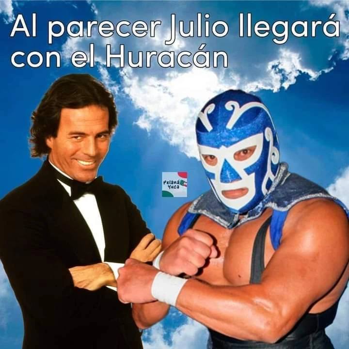 Del séptimo mes del año, que se ha vuelto el mes de los memes de Julio Iglesias, viene otro que hace referencia al huracán Beryl que está previsto que llegue al territorio mexicano en estos primeros días de julio, lamentablemente con mucha fuerza, pero eso no evitó que naciera un meme con la frase de: «al parecer Julio llegará con el Huracán», entonces vemos al melodioso artista al lado del luchador mexicano, que saltó del cine al ring, el Huracán Ramírez.