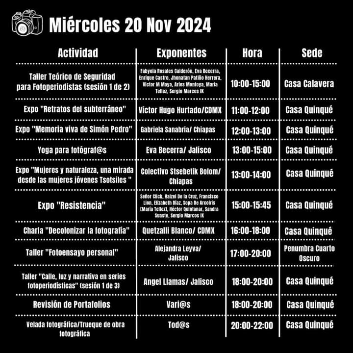 Para más información sobre este evento que inicia el 19 de noviembre, contactar a Carlos Mario Delacruz, al correo delacruz620115@gmail.com o a Rafael Durán al whats app 5578965106. Las redes sociales y sitio web del evento son, en Facebook: Encuentro Fotográfico México; en Instagram: encuentrofotograficomexico; en X: encuentrofotomx y en la página web: https://efotograficomexico.wixsite.com/mexico. El programa completo lo encuentran en https://efotograficomexico.wixsite.com/mexico/programa