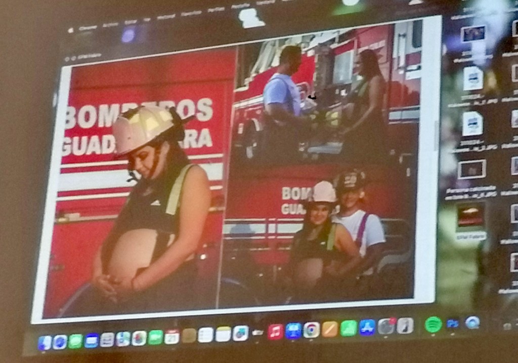 Desde hace tres años Fabricio Atilano trabaja en los bomberos de Guadalajara. Su primer día como fotógrafo ahí fue la de una pareja de bomberos que «estaban embarazados». Le preguntaron: «¿Eres fotógrafo? Entonces tómamos una foto».