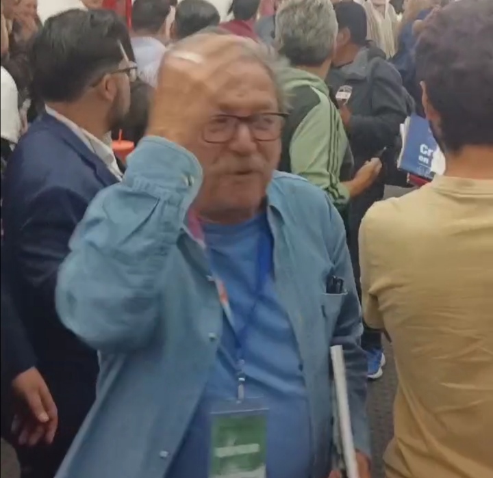 La reacción de algunos asistentes no tardó y comenzaron a gritar las frases típicas de los seguidores de fe ciega de la Cuarta Transformación, tales como «¡Es un honor estar con Obrador!» y luego «¡Es un honor estar con Claudia hoy!». El salón 7 de la planta alta del área nacional se convirtió en una revuelta de gritos y ataques a ese joven que la seguridad de la FIL intentaba sacarlo del salón, mientras expresaba que esto parecía un mitin de la 4T.
