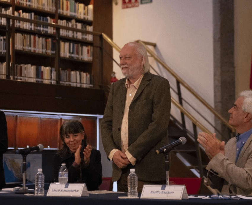 El caso es que Míster László, ganador del Premio Formentor 2024, estuvo en Guadalajara para participar en la Cátedra Julio Cortázar y ofrecer un discurso en la Biblioteca Iberoamericana Octavio Paz, leyendo su discurso ganador ante poco más de 200 asistentes. Posteriormente se trasladó a la Expo Guadalajara, sede de la FIL, para ofrecer una rueda de prensa ante medios locales y nacionales. En dicha sesión y en otra realizada al día siguiente, habló acerca de su obra, el contexto sociohistórico en la que surgió y sus exploraciones estéticas en torno a la literatura narrativa, pues Krasznahorkai es mayormente conocido como novelista, si bien ha cultivado el cuento y el ensayo.