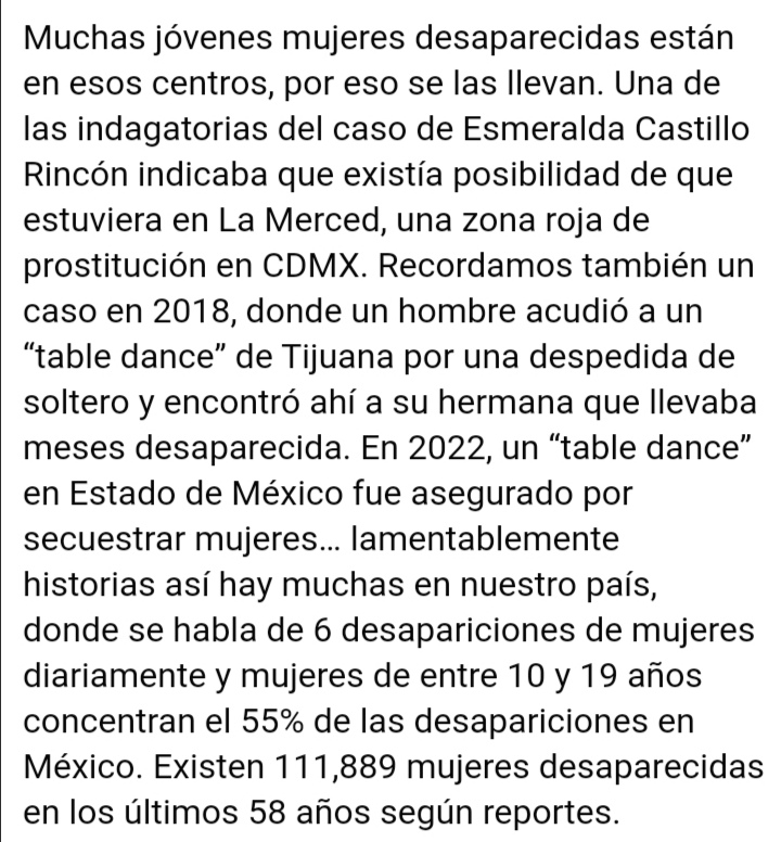 La trata de personas con fines de explotación sexual, así como las redes de trata para mendicidad, son uno de los problemas más complejos y devastadores, y ha sido denunciada de manera sistemática a lo largo de los años. En 2005, la periodista Lydia Cacho reveló redes de explotación sexual con nombres y apellidos, un trabajo que le costó tortura y exilio, mientras que Mario Marín, uno de los responsables, actualmente cumple condena en su domicilio. Organizaciones de la sociedad civil han seguido rescatando víctimas y denunciando estas prácticas a lo largo del tiempo. Hoy en día, equipos de profesionales, a menudo insuficientes y trabajando en condiciones precarias, logran auténticos milagros al rescatar a las personas, muchas de ellas niñas, como bien señalan, de las manos de tratantes que utilizan diversos métodos de enganche, siendo el internet uno de los más comunes. Al mismo tiempo, algunas mujeres han logrado liberarse de la brutalidad de la trata por sus propios medios, lo que muestra la resistencia frente a un sistema voraz.