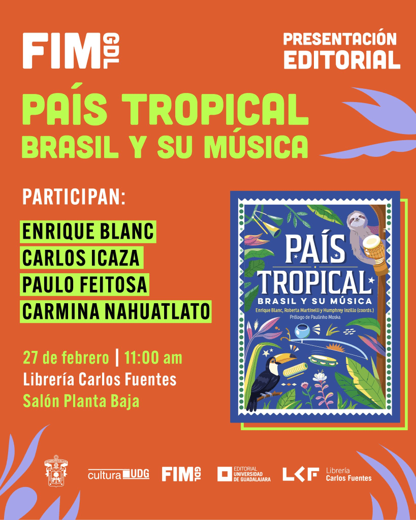 En la FIM también hay libros. «País tropical. Brasil y su música», editado por la Univesidad de Guadalajara y coordinado por Enrique Blanc, Roberta Martinelli y Humphrey Inzillo. En esta obra, una colaboración que surge de la complicidad entre periodistas brasileños y otros más procedentes de distintos países de América Latina, se escucha la diversidad de los sonidos hechizantes de Brasil.