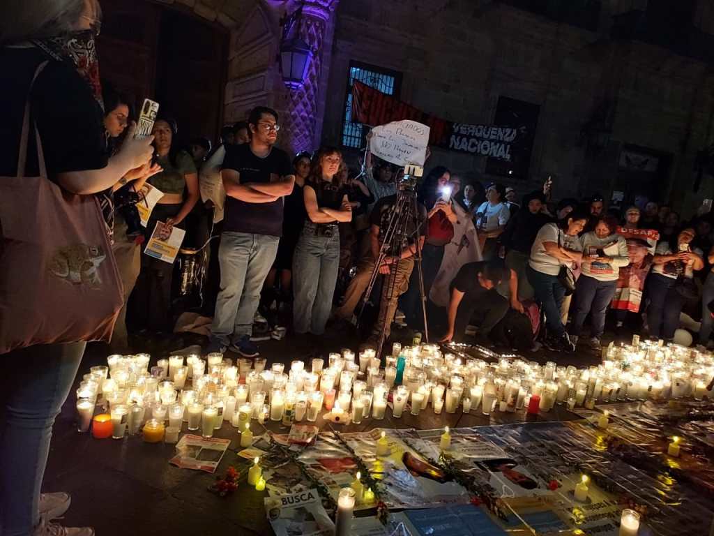 Cientos de personas se reunieron frente al Palacio de Gobierno de Jalisco la tarde del 15 de marzo, para gritar su indignación y rabia por los desaparecidos en Teuchitlán.
