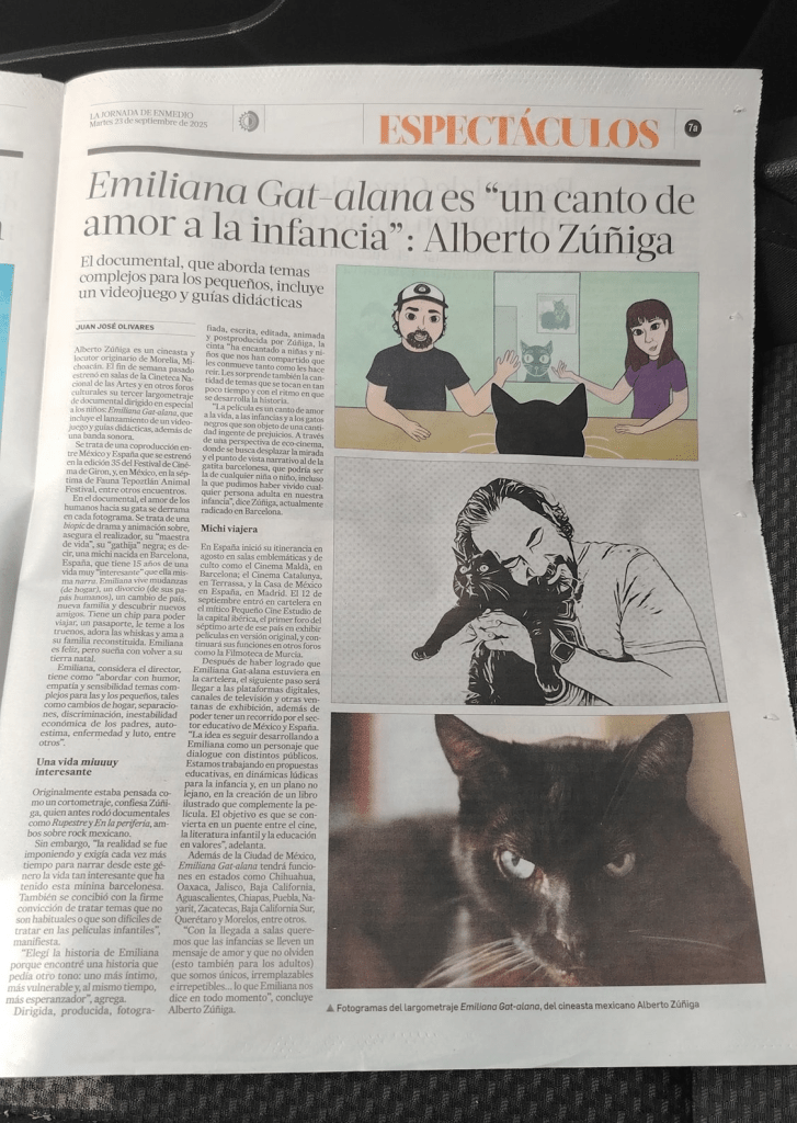 Hoy estamos en La Jornada Nacional y nos llena de orgullo porque allá fuera, en el mundo de la competencia voraz, en el mundo del capitalismo que lo fagocita todo, estamos nosotros y la historia de nuestra gatita barcelonesa compitiendo contra los 30 años de Toy Story en cartelera.