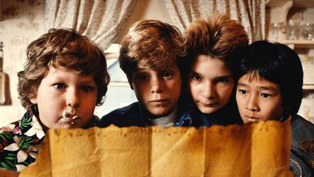 Los Goonies (EUA, 1985), de Richard Donner, son un grupo de amigos como entre adolescentes – preadolescentes y dos de ellos son unos hermanos que están a punto de perder su casa y tener que irse a vivir a quiensabe donde, los demás también tendrán que irse, aunque sea más adelante, porque en donde viven van a construir un club de golf. Lo que está extraño porque vemos que la zona es una colina escarpada nada rara.