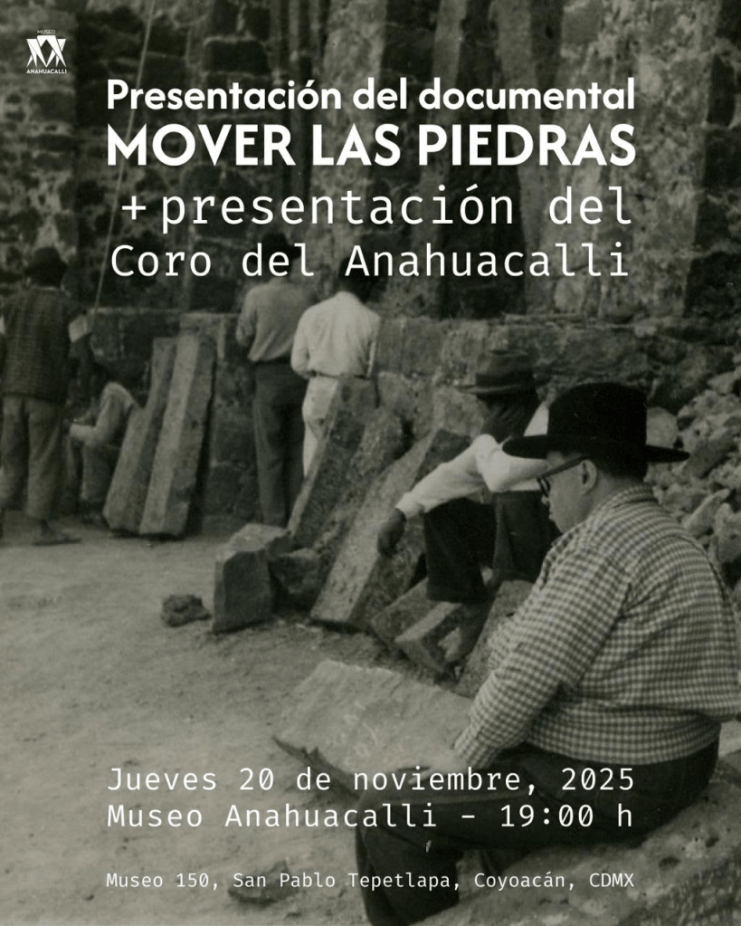 En el mes de septiembre el documental Mover las piedras, se presentó en Cineteca Nacional y este, jueves, 20 de septiembre se exhibirá en el Museo Anahuacalli, para luego pasar por Cinemex, el 27 de este mismo mes, y luego estar una temporada en el Cine Tonalá de la colonia Roma, será parte de la Gira de Documentales Ambulante 2026.