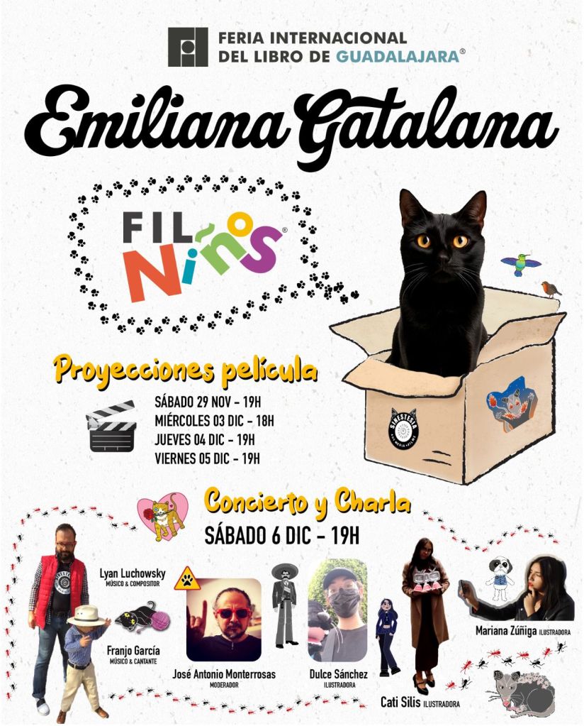 Nunca en tantos años de cubrir la Feria Internacional del Libro de Guadalajara había entrado a FIL Niños, claro, como no tengo hijos y a mis sobrinos hace años que no los veo, es un mundo extraño, pero una gatita que le gusta el mambo no solo me llevó a conocer ese espacio, sino que además es para moderar una charla con los creadores de la película Emiliana Gat-alana, un filme para niñas, niñes y niños, que cuenta la historia de la hija gatuna de mi querido y admirado amigo cineasta mexicano-catalano, Alberto Zúñiga, realizador de esta película que tiene por locaciones Barcelona y varios lugares de México.