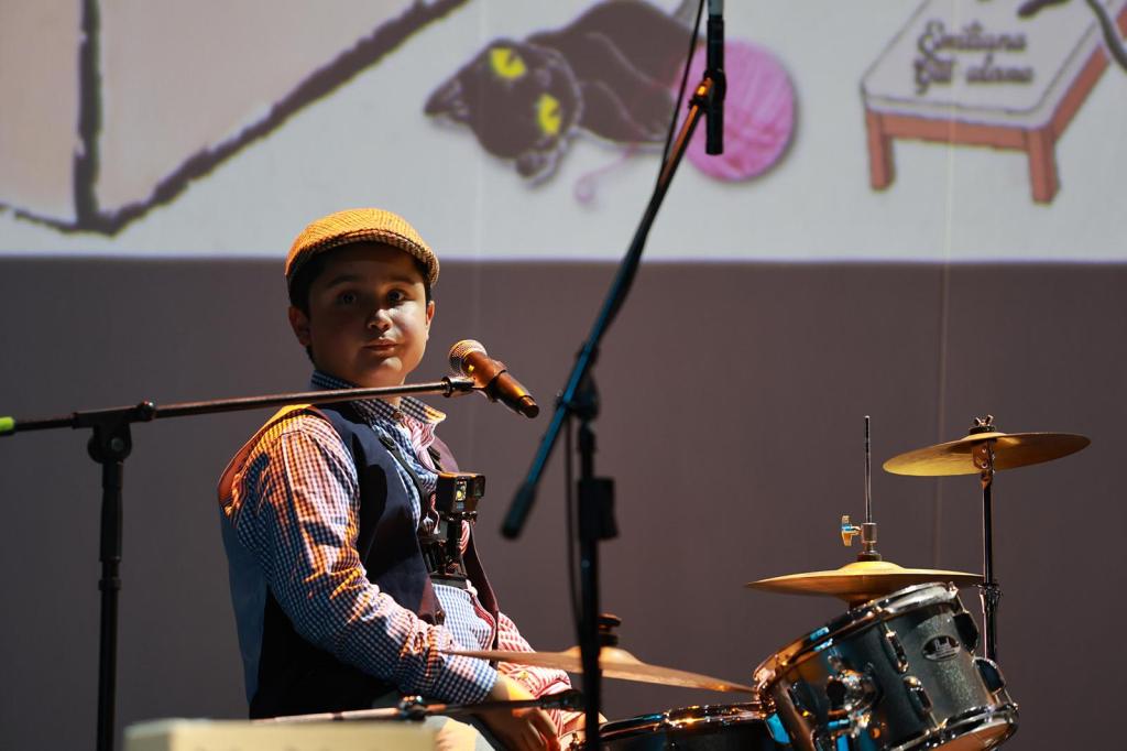 En la charla con las ilustradoras de la película (Mariana y Catalina Zúñiga y Dulce Sánchez) les contaron su experiencia en esta película y su relación con los felinos. Todos invitamos a que había que cuidar a los gatos porque son seres lindos. Luego vino el número musical, una canción muy poderosa, compuesta por los michoacanos Lyan Luchowsky y su hijo Franjo de no más de 15 años; el primero con guitarra cantaba y maullaba; el segundo, con batería lo acompañaba también con la voz.