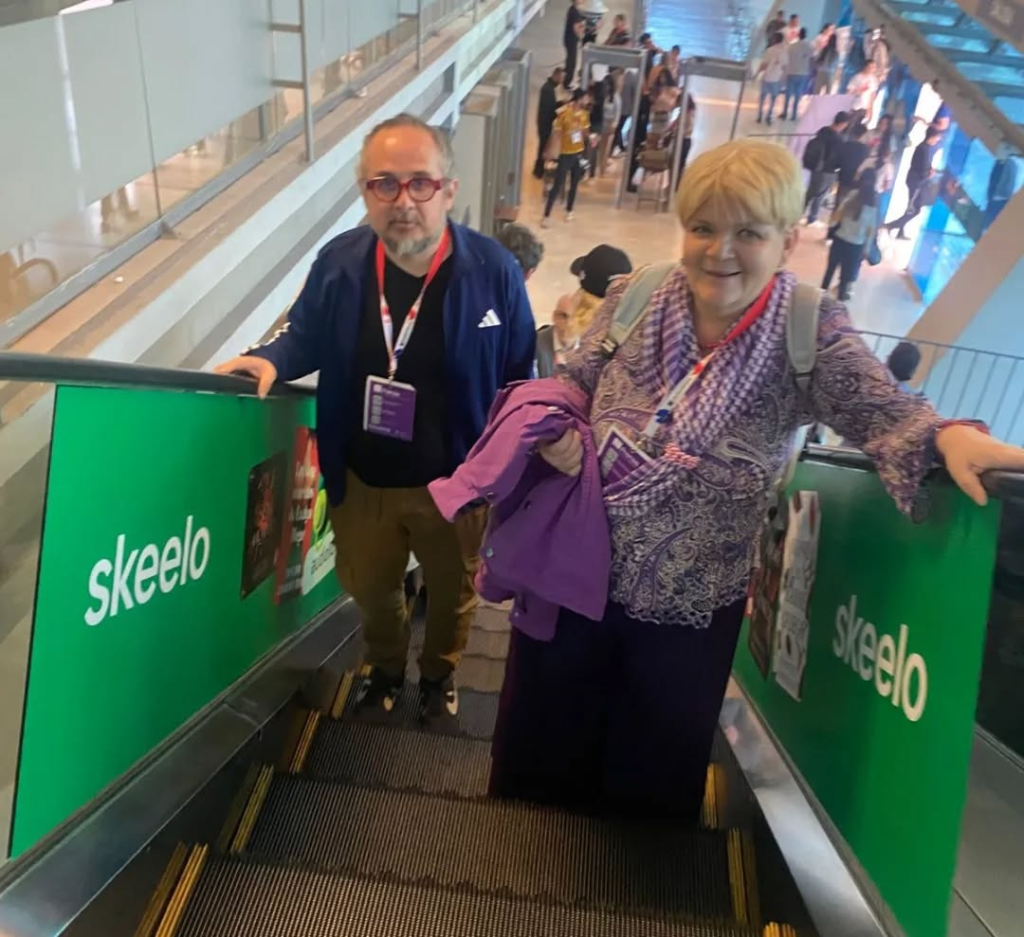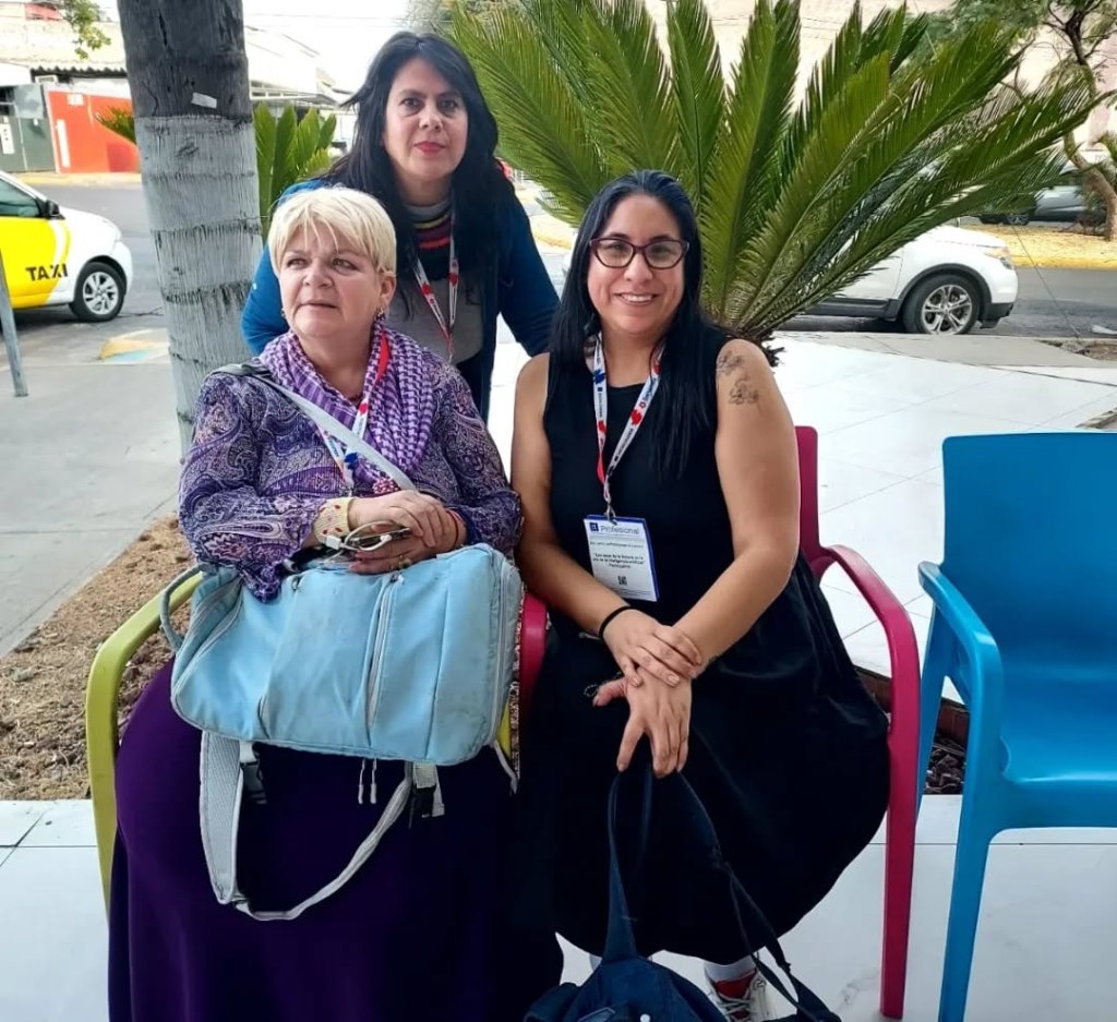 Al esperar el transporte les hice una foto a Mónica, Lucierene y Liz, luego subimos al vehículo rumbo a la FIL, para finalmente tomar las escaleras eléctricas y estar puntuales en el salón B del Área Internacional de la Expo Guadalajara. Llegamos, como es obvio, 15 minutos antes. Ya la esperaba ahí Zeth Arellano, una de sus presentadoras que ahora llora sin consuelo la partida de su amiga, y que un día antes, el primer día de diciembre, presentó su primer libro de cuentos Ruinas líquidas, junto a la académica Cecilia Eudave y la misma Mónica Maristain.