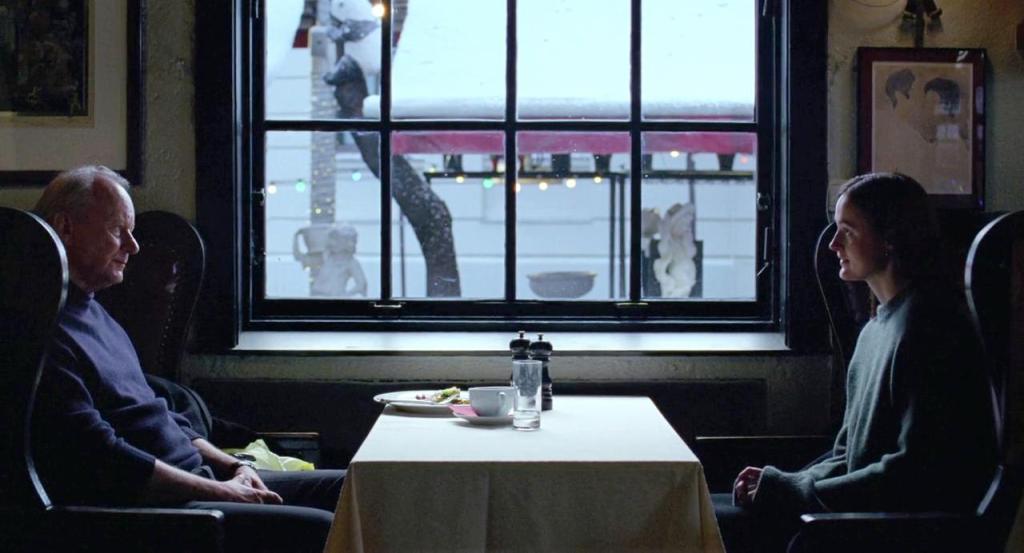 Si algo sabe hacer Trier —y aquí lo lleva al paroxismo— es filmar la arquitectura del privilegio. Oslo es aquí un conjunto de interiores tan pulcros que resultan violentos. Nora (una Renate Reinsve que ha sustituido la vitalidad por un dolor acorazado) se mueve entre estos muros como quien recorre una celda de lujo, intentando descifrar si el regreso de su padre es un acto de amor o una simple búsqueda de locaciones y personajes para su narcisismo. Mientras ella implosiona por su relación personal con un colega casado.